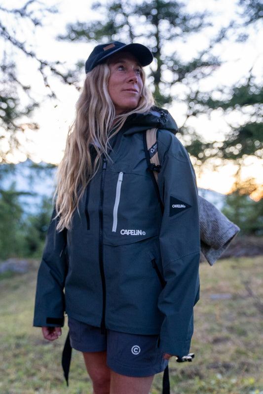 All of Capelin Crew's fabrics are treated using a PFC-Free, eco friendly DWR treatment. Water beads off instead of soaking in, improving waterproofing and keep dry.