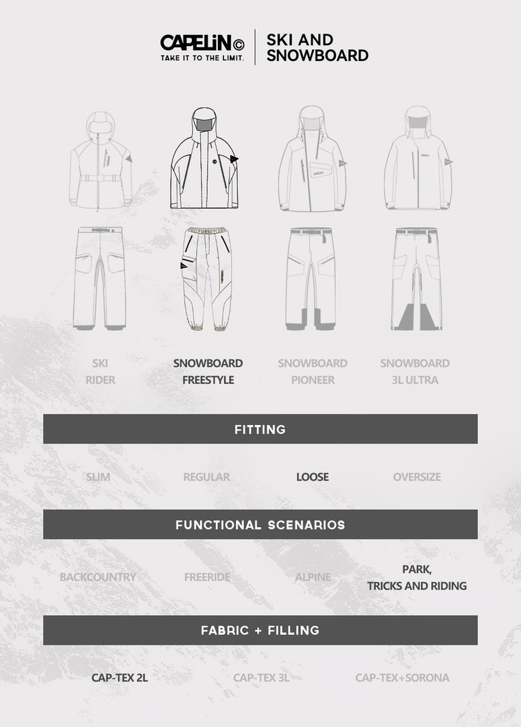 整件夾克的接縫處均採用壓膠。接縫是任何服裝的最薄弱點。 CapelinCrew 採用特殊膠帶確保水不會滲入,讓您放心地在斜坡上騎行