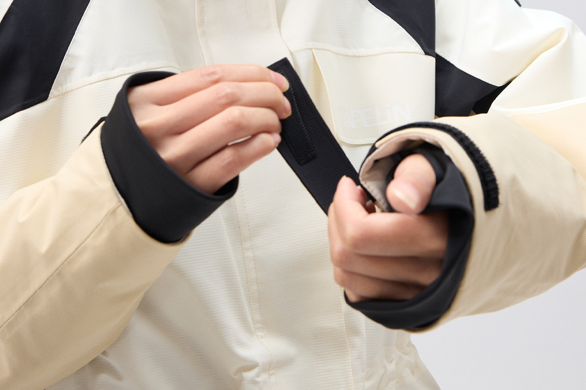 魔術貼袖口和拇指孔可確保牢固貼合,防風防雪,並提高保暖性。