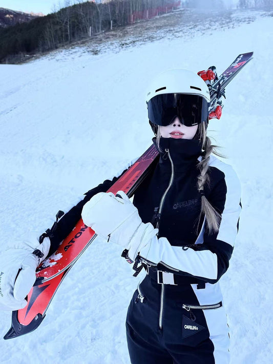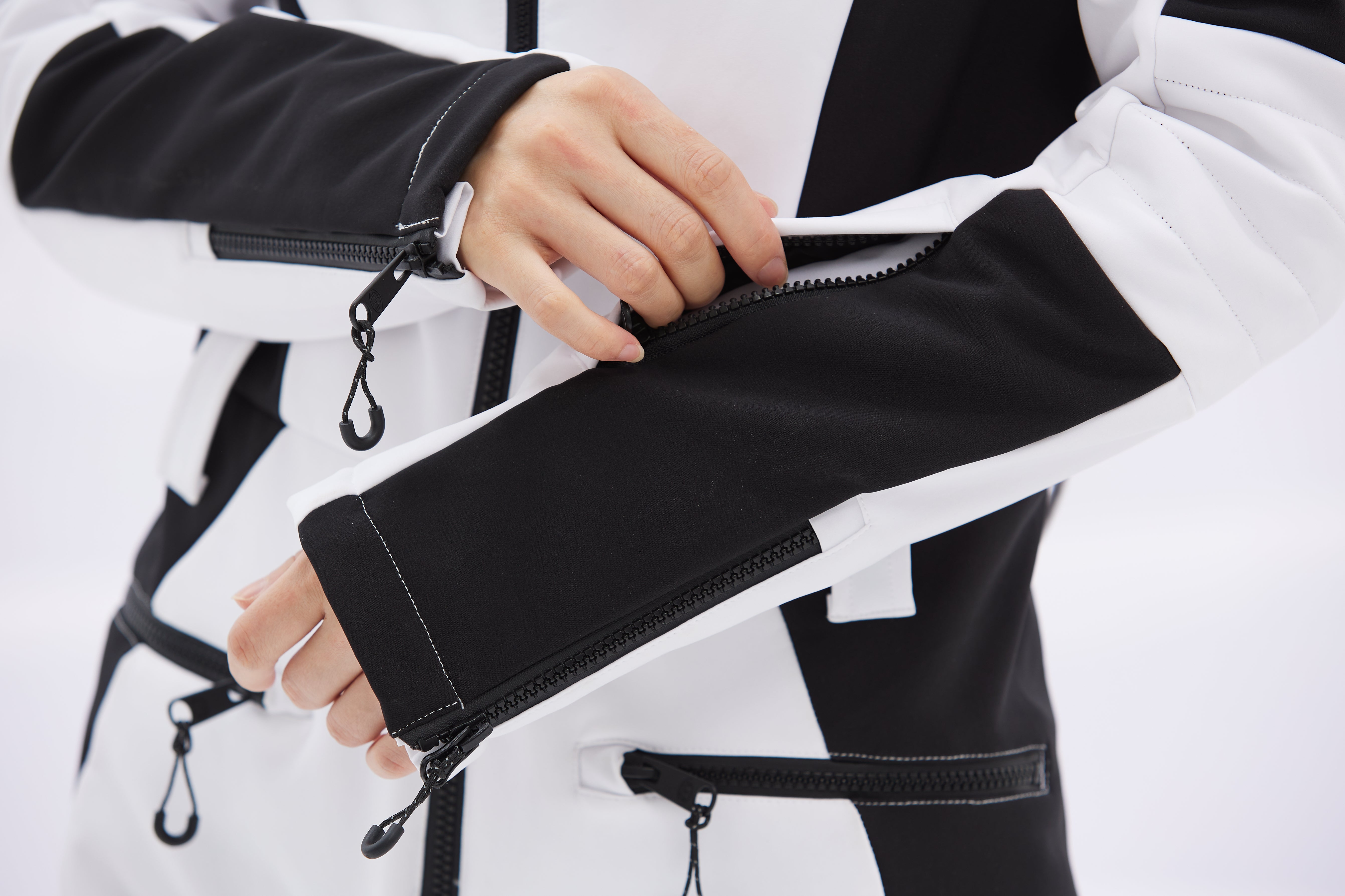 Moon 女士滑雪連身衣專為在雪道上發揮最佳性能和享受舒適體驗而設計。它採用 92% 聚酯纖維和 8% 氨綸混紡面料,並覆以 TPU 層壓三層防水透氣膜,防水性能高達 15,000 毫米水柱,透氣性達 15,000 克/平方米/24 小時,確保您在任何天氣下都能保持乾爽舒適。抓絨內襯保暖而不臃腫,3D 立體剪裁設計提升貼合度並降低風阻。這款滑雪服配備防風高領、拉鍊口袋和可調式腰帶,方便您根據自身需求調整鬆緊,兼具時尚外觀和實用功能,是您冬季探險的理想之選。
