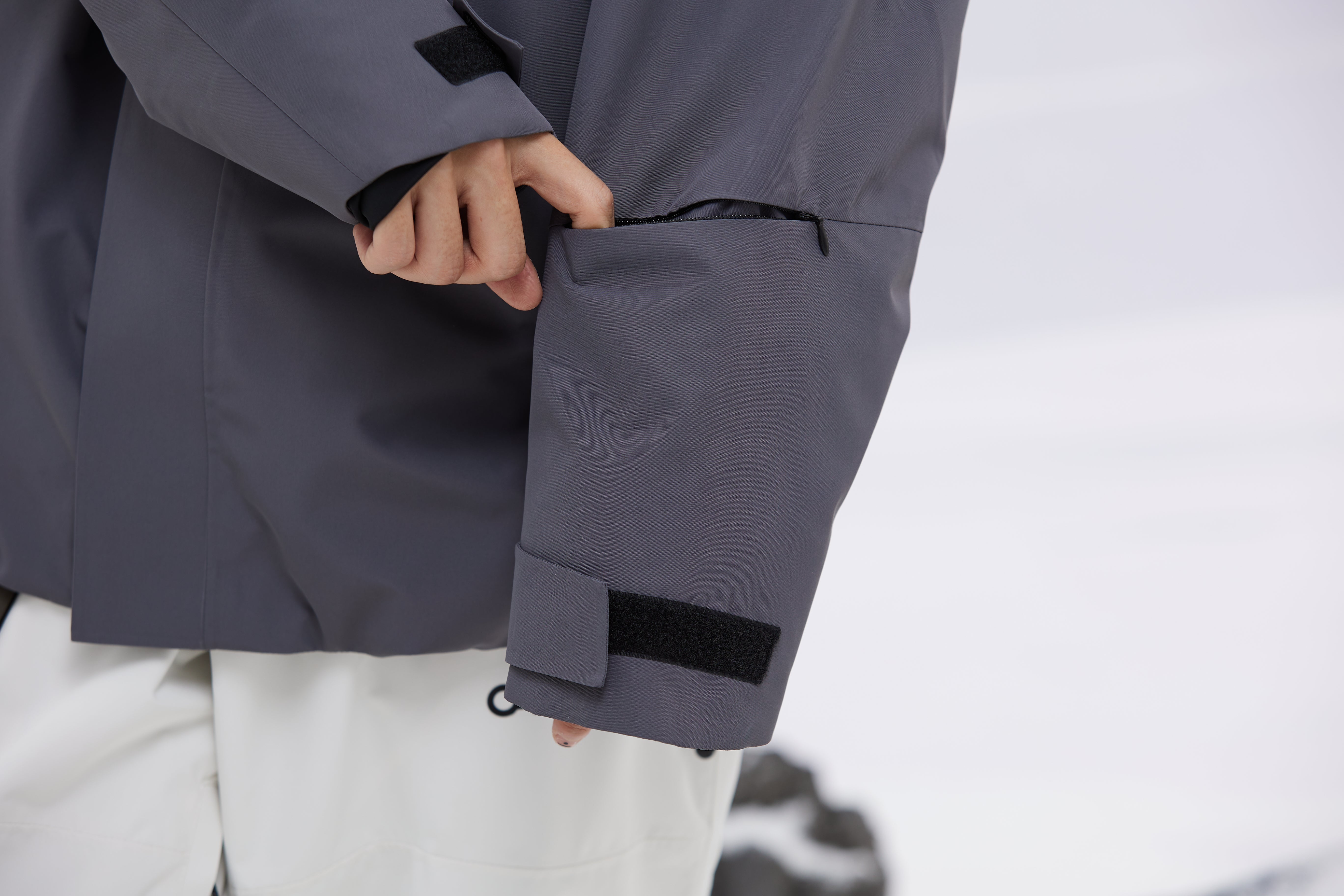 魔術貼袖口和拇指孔可確保牢固貼合,防風防雪,並提高保暖性。