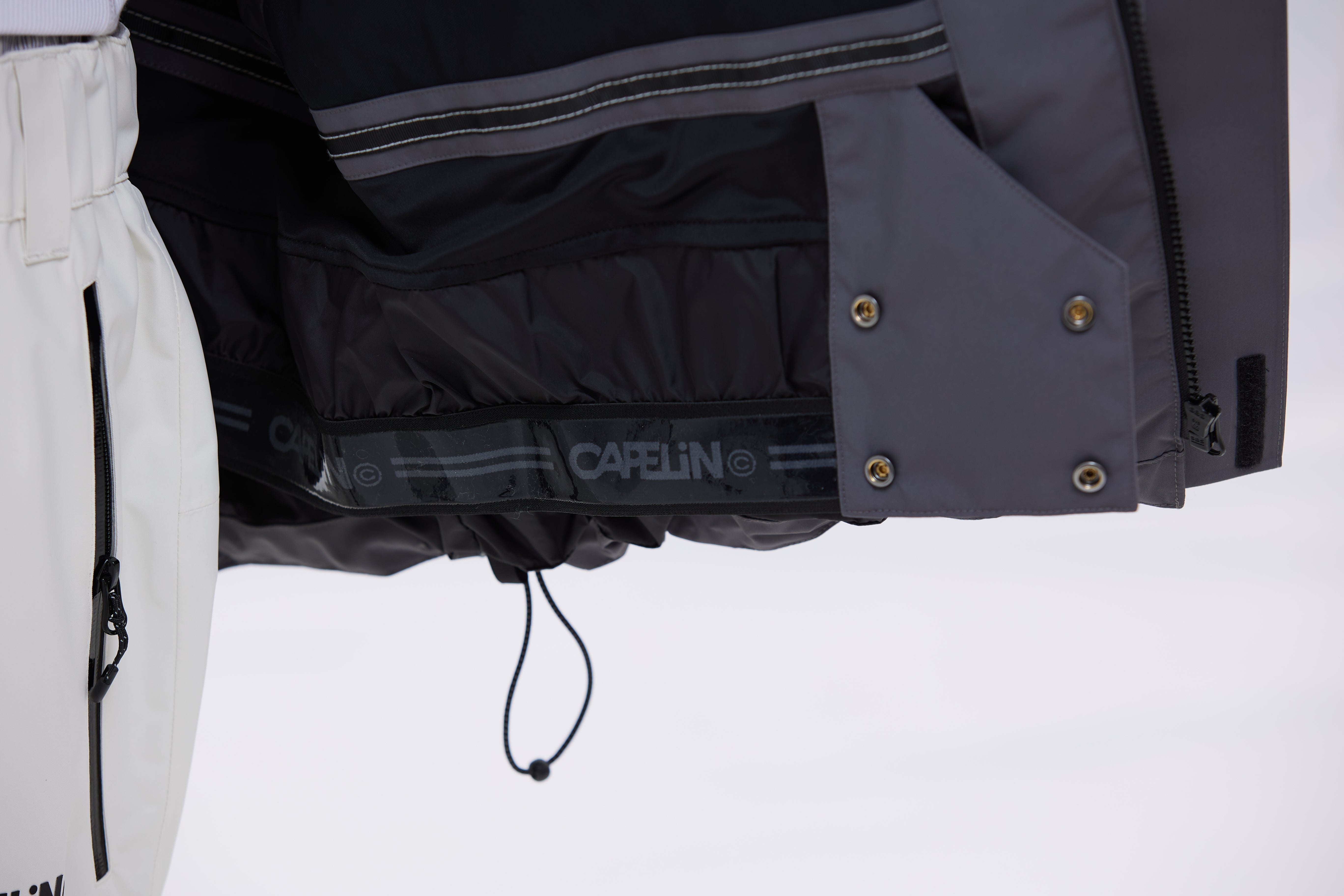 整件夾克的接縫處均採用壓膠。接縫是任何服裝的最薄弱點。 CapelinCrew 採用特殊膠帶確保水不會滲入,讓您放心地在斜坡上騎行
