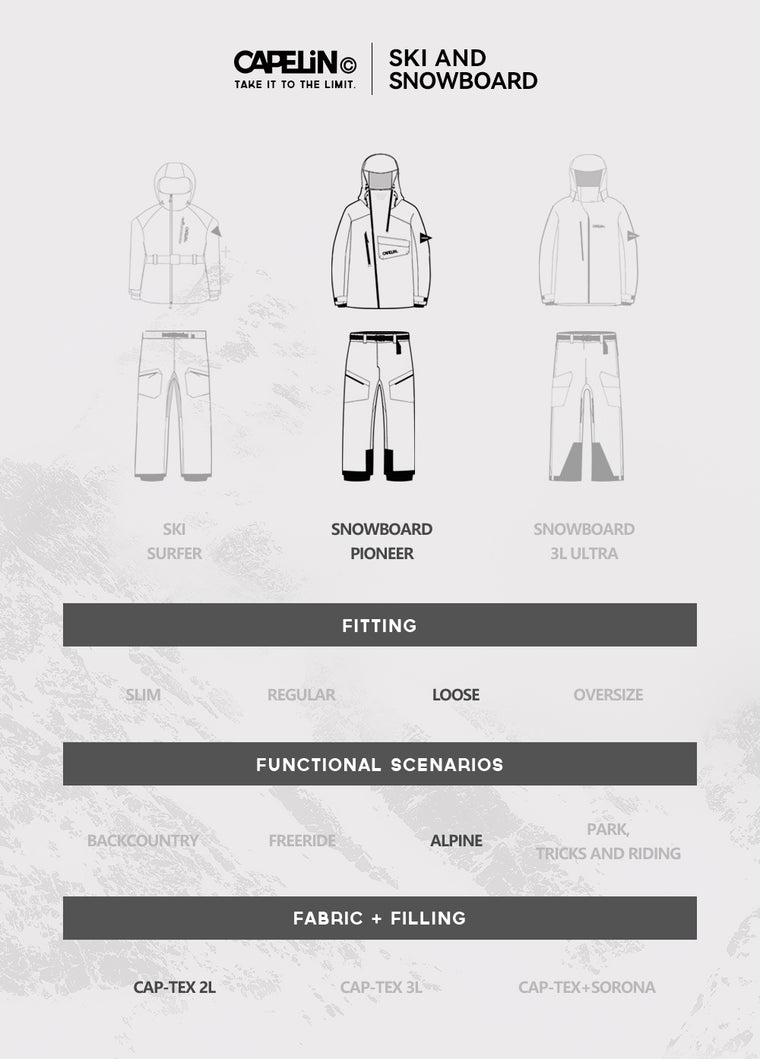 整件夾克的接縫處均採用壓膠。接縫是任何服裝的最薄弱點。 CapelinCrew 採用特殊膠帶確保水不會滲入,讓您放心地在斜坡上騎行