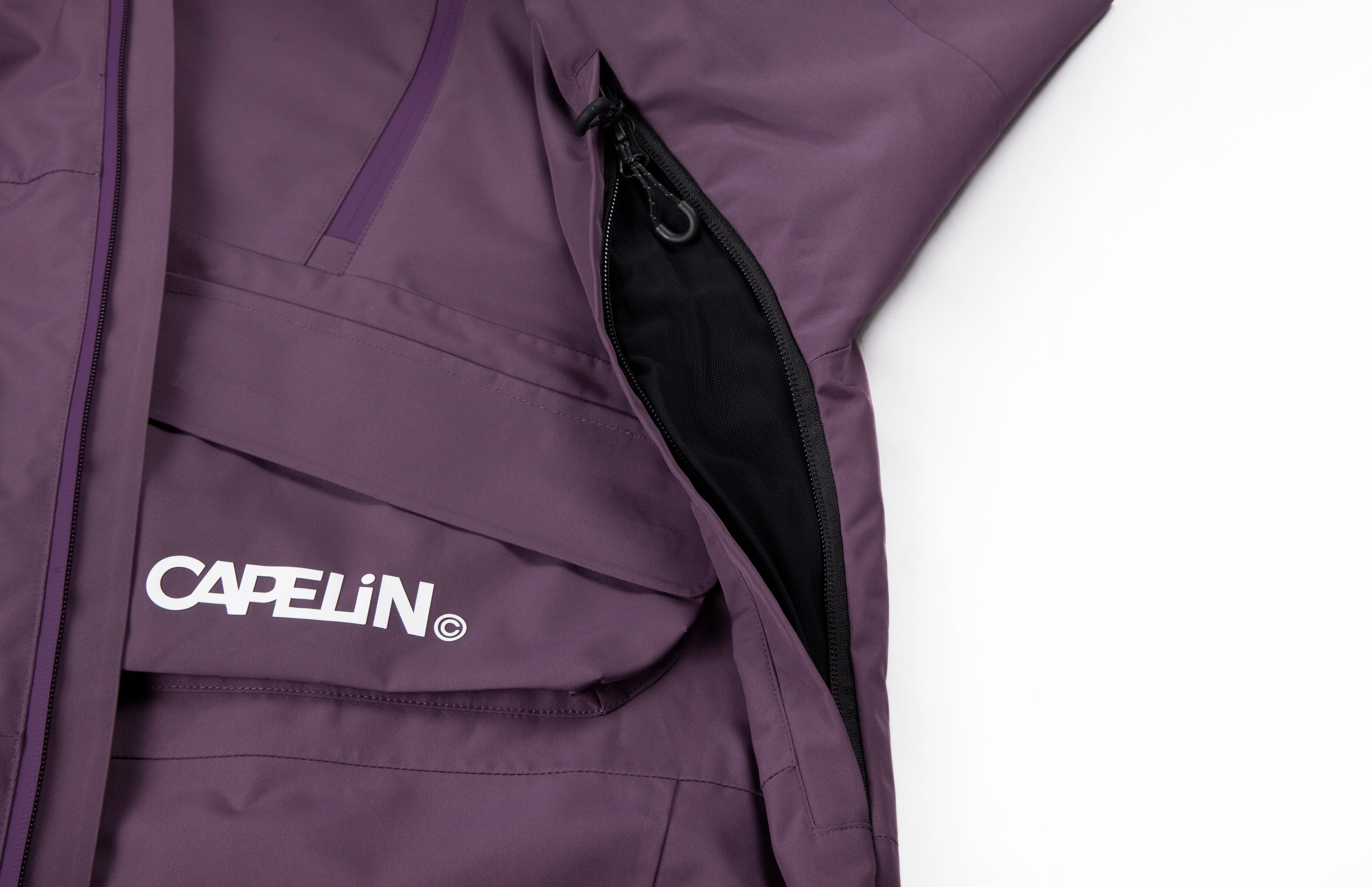 Capelin Crew 的所有面料均採用不含 PFC、環保的 DWR 處理方法進行處理。水珠脫落而不是浸泡,提高防水性並保持乾燥。