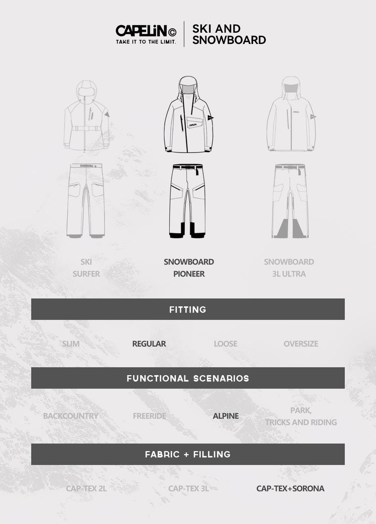Capelin Crew Matrix 男女通用滑雪服,採用專業 2L 防水防潑水布料,滿足您在雪道上滑雪的一切需求。腋下透氣設計與調節系統讓您在雪道上活動自如。