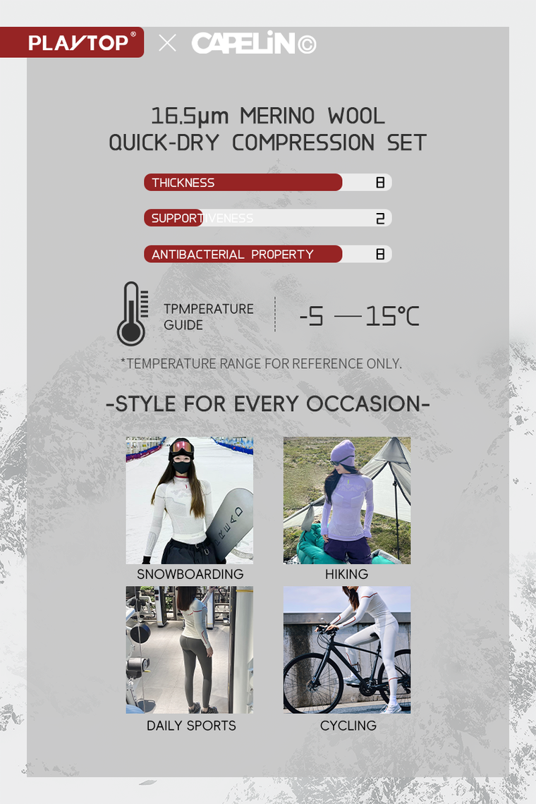 超細美利奴羊毛男女通用滑雪板和滑雪打底衣
