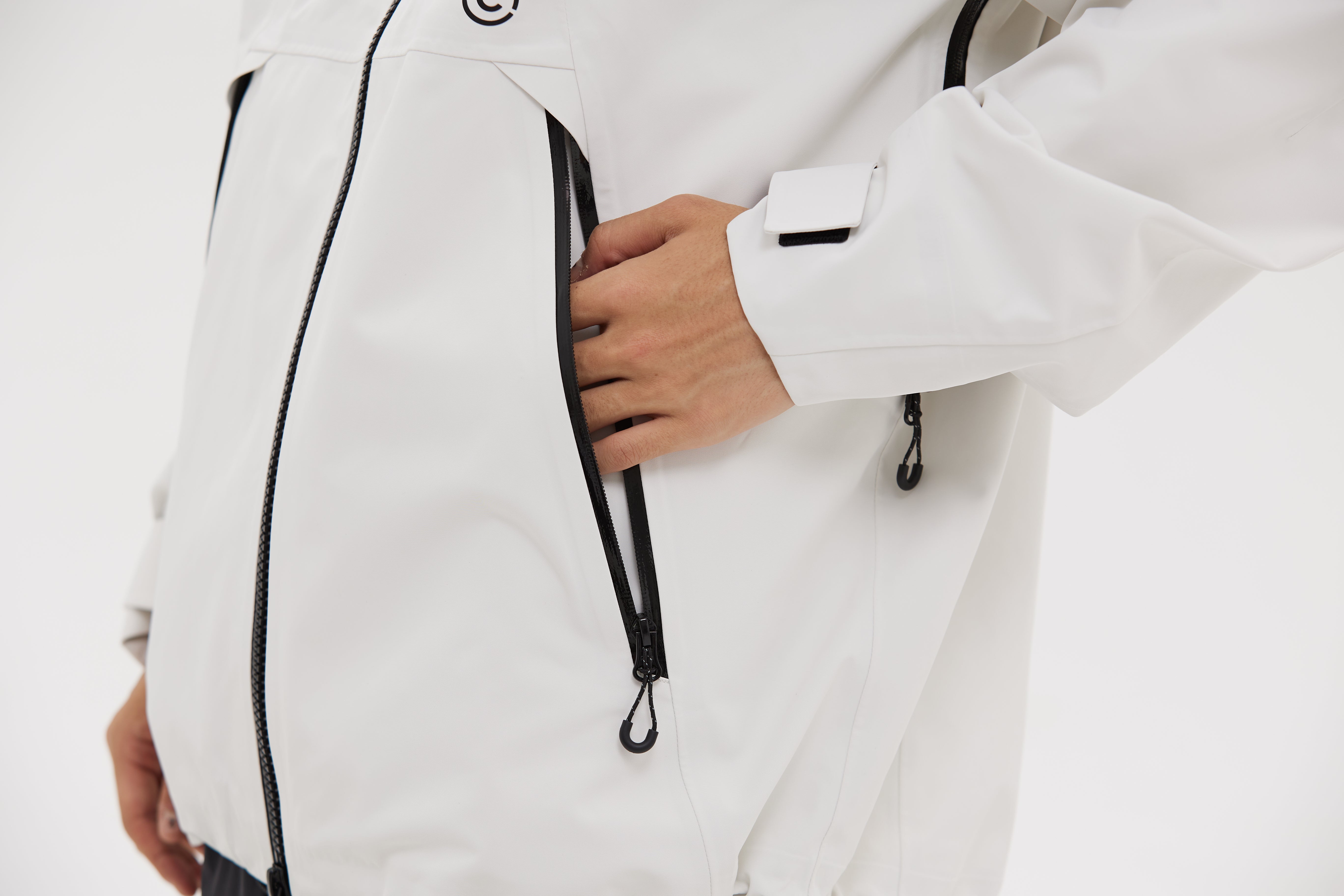 我們的高性能三層複合佈料外殼具有卓越的防水性和透氣性,外層採用超強韌的編織布料,並具有防水功能。 & 透氣膜。即使在最劇烈的運動中,這種布料也能讓你保持乾爽。