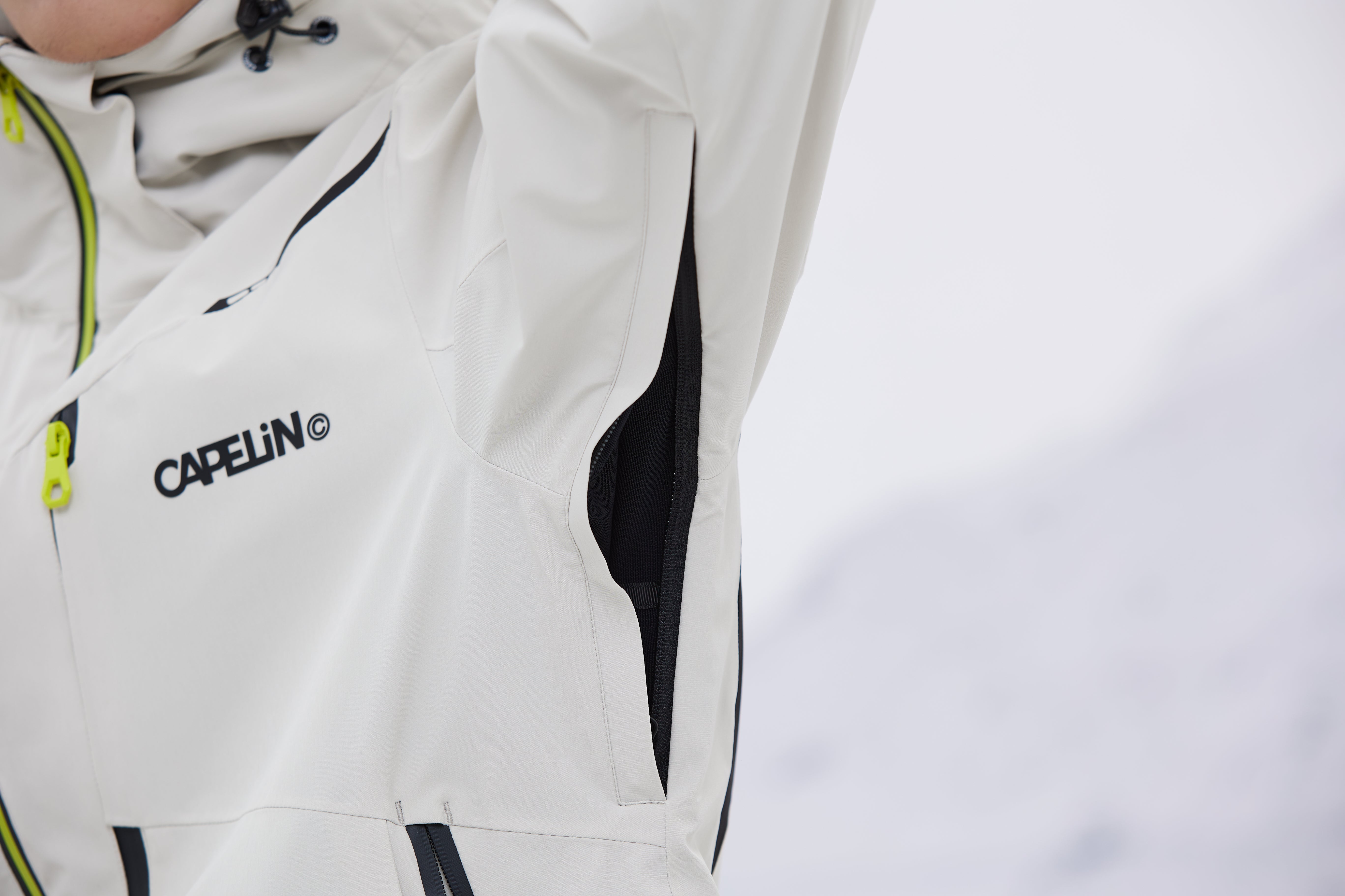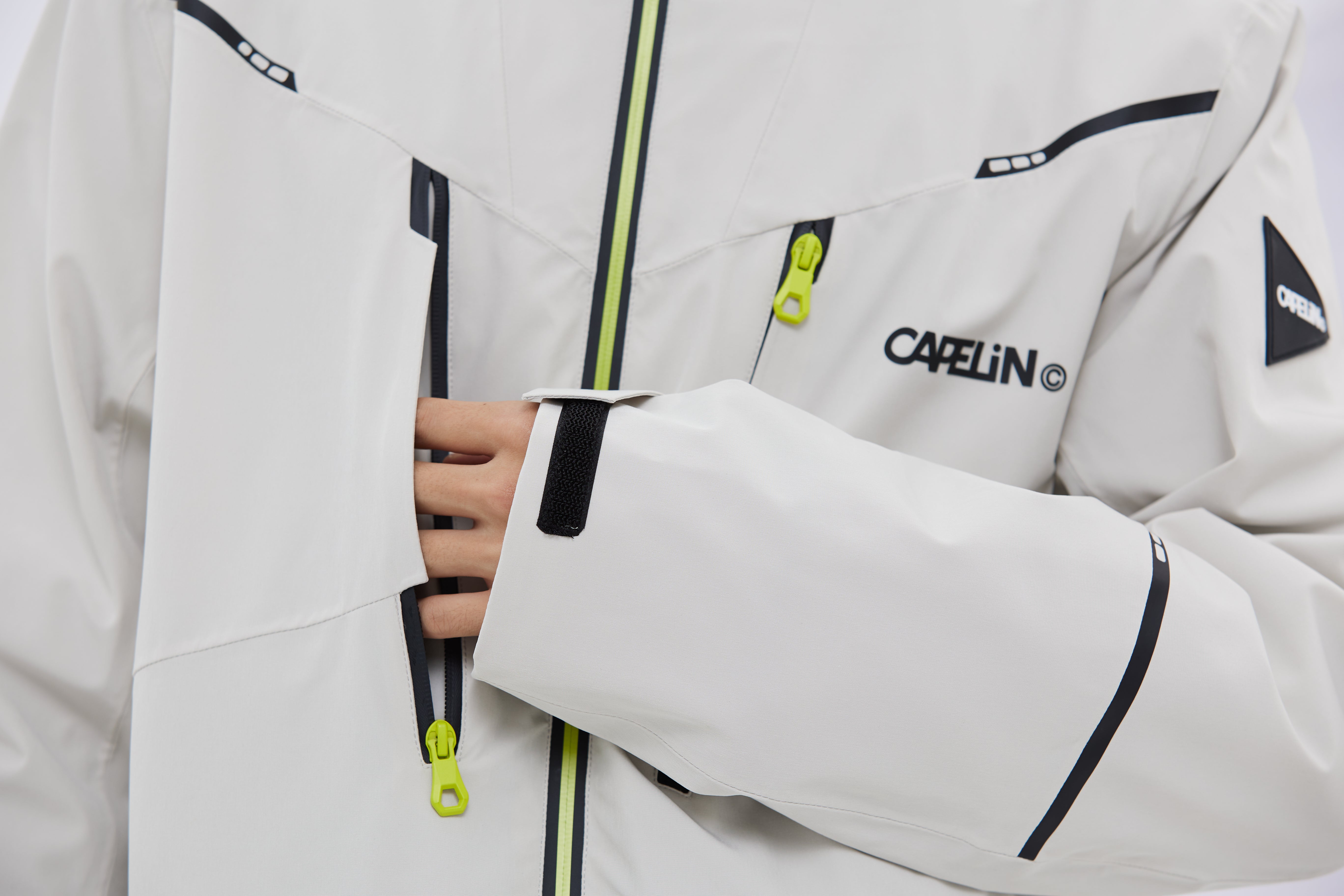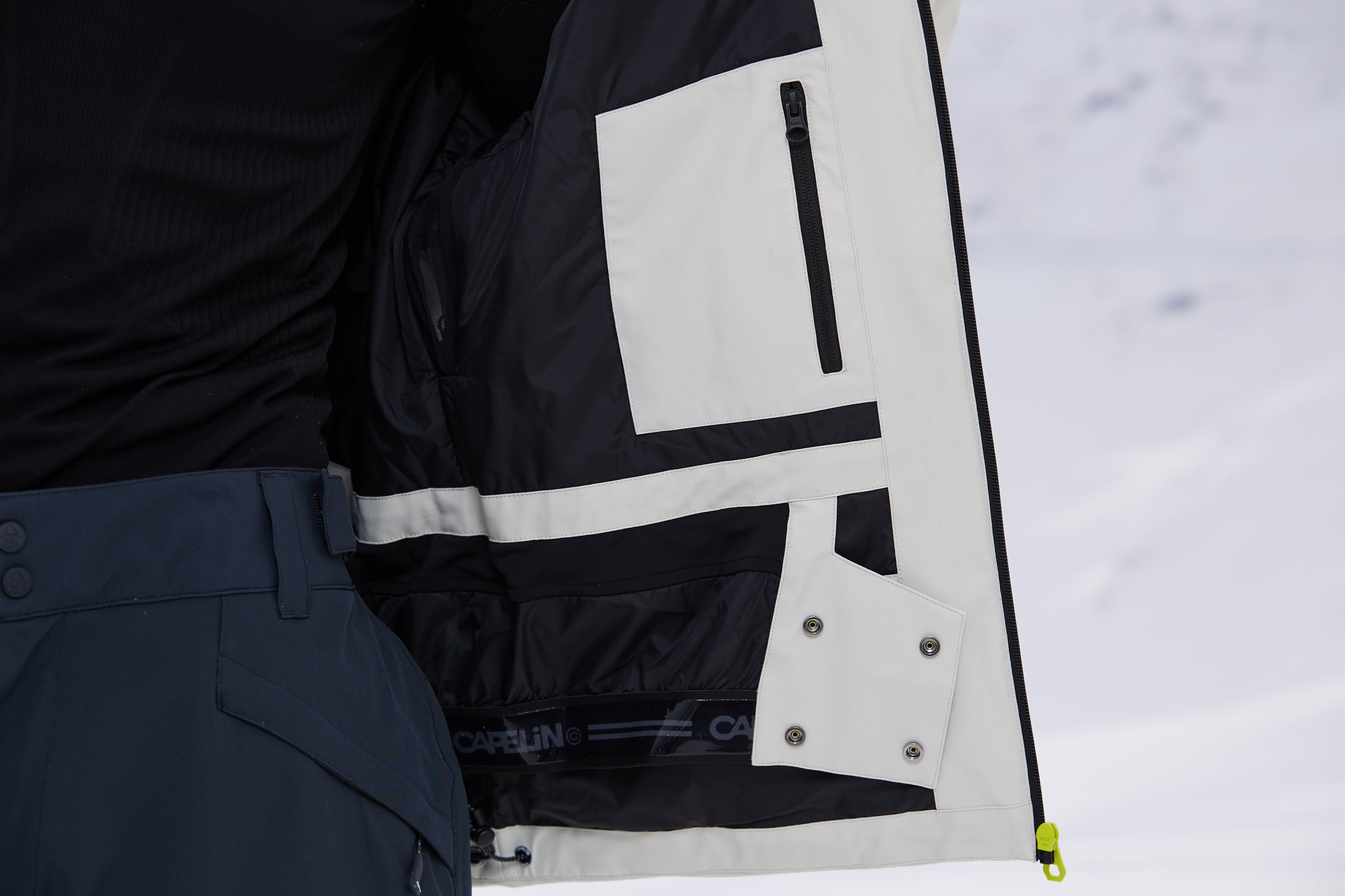 整件夾克的接縫處均採用壓膠。接縫是任何服裝的最薄弱點。 CapelinCrew 採用特殊膠帶確保水不會滲入,讓您放心地在斜坡上騎行