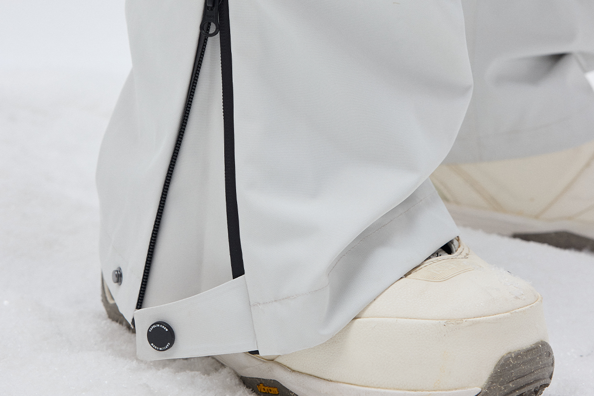 • 褲腿開口處可調節拉鍊和按扣,以適合雪地靴