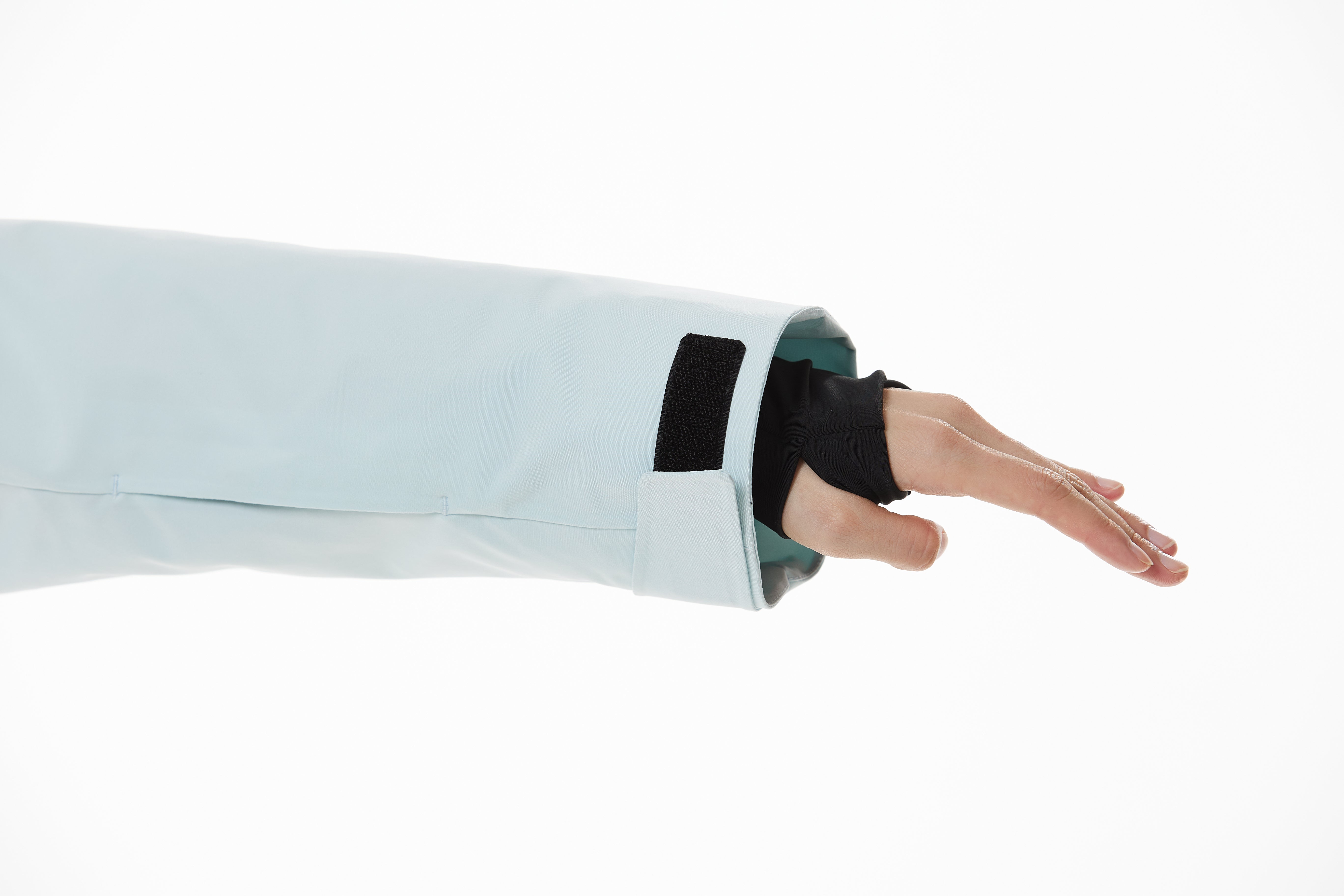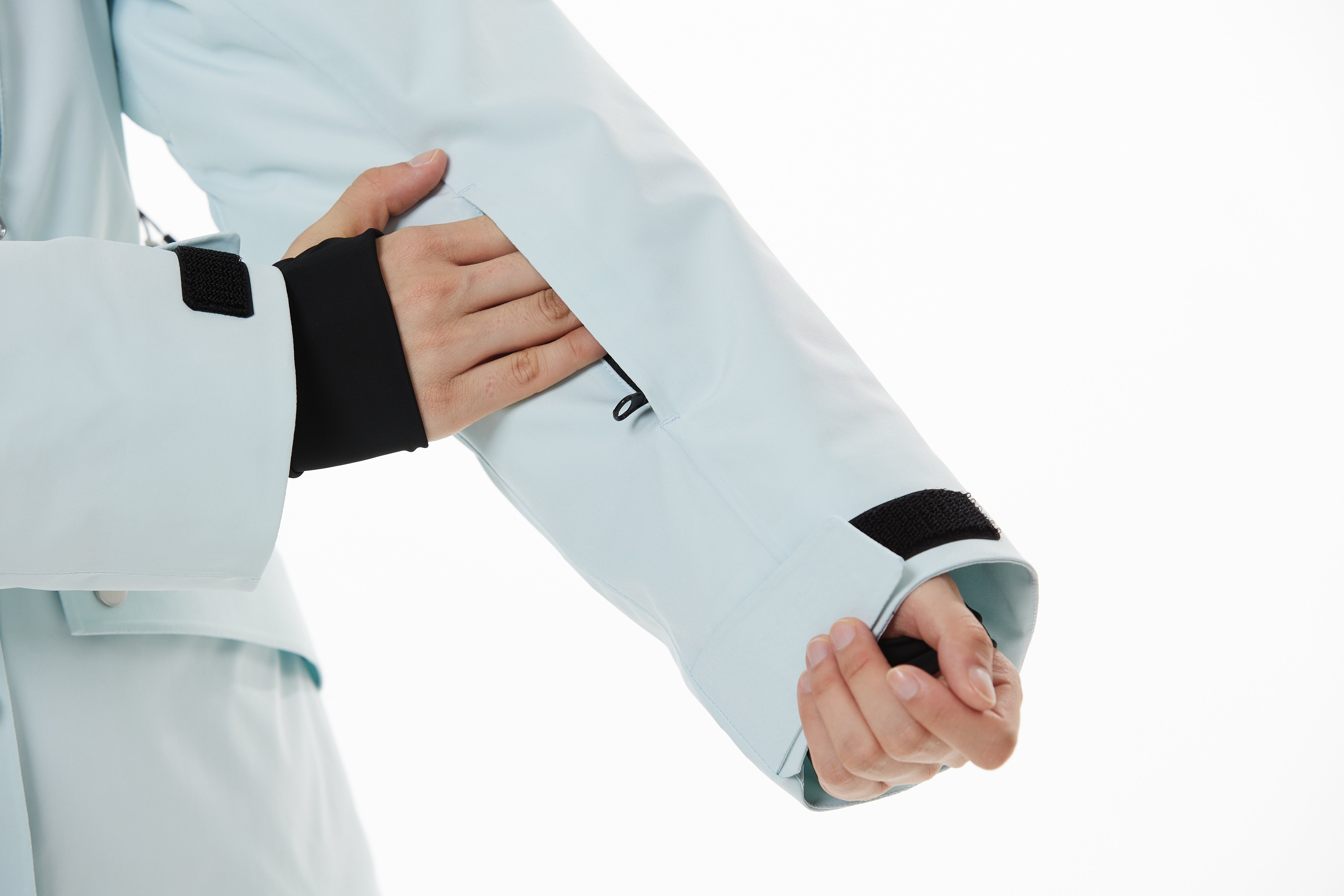 魔術貼袖口和拇指孔可確保牢固貼合,防風防雪,並提高保暖性。