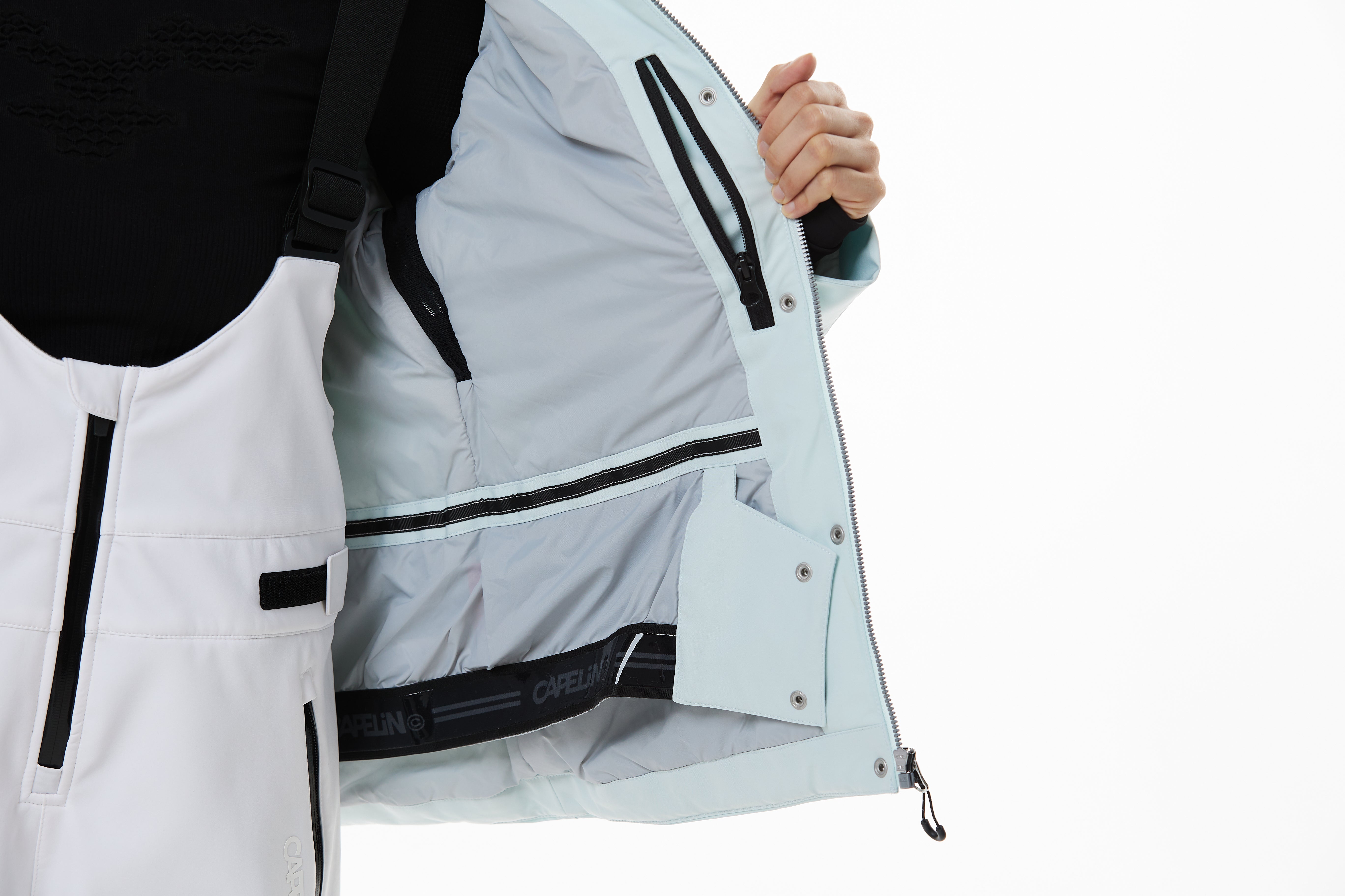 整件夾克的接縫處均採用壓膠。接縫是任何服裝的最薄弱點。 CapelinCrew 採用特殊膠帶確保水不會滲入,讓您放心地在斜坡上騎行